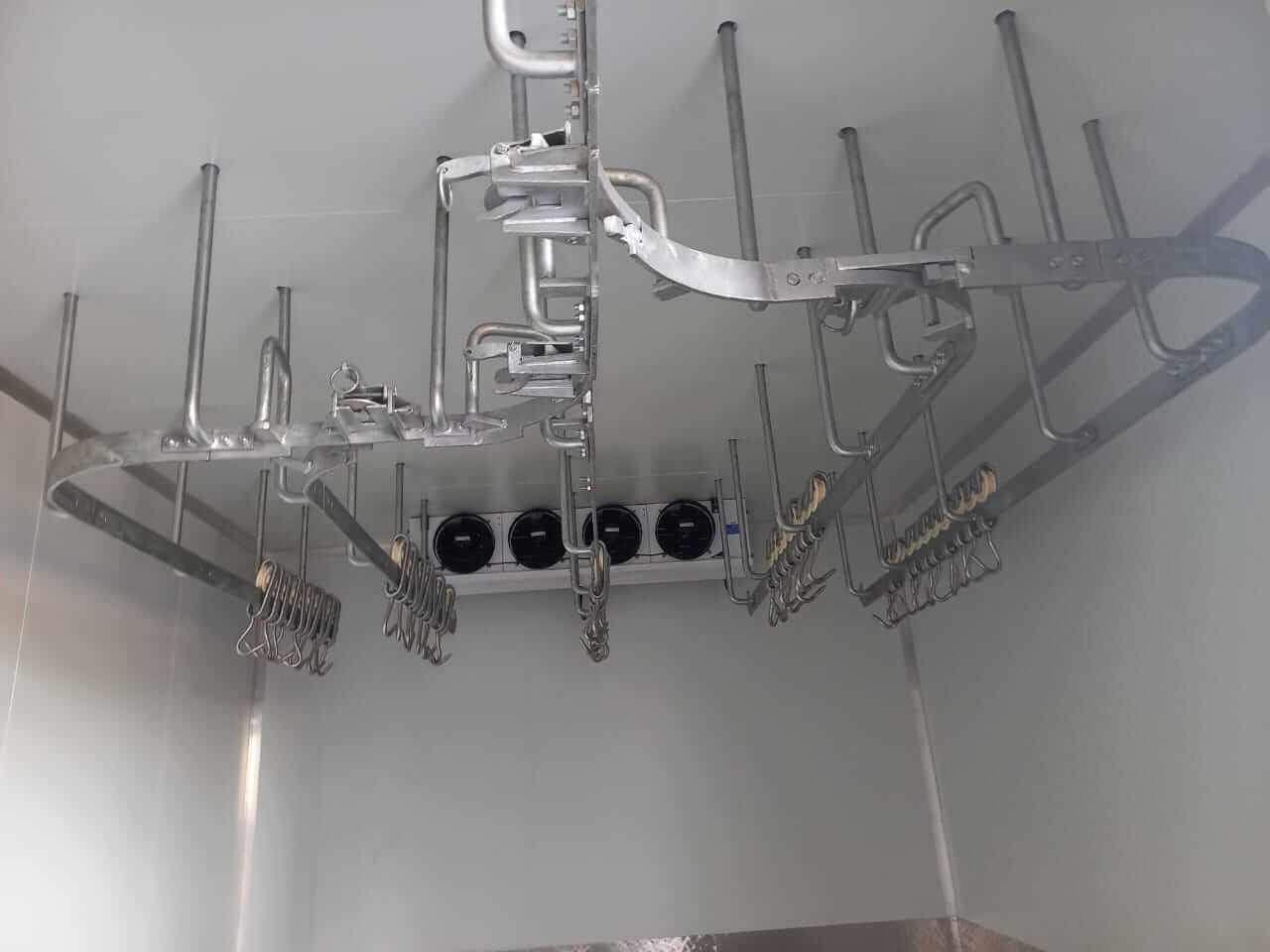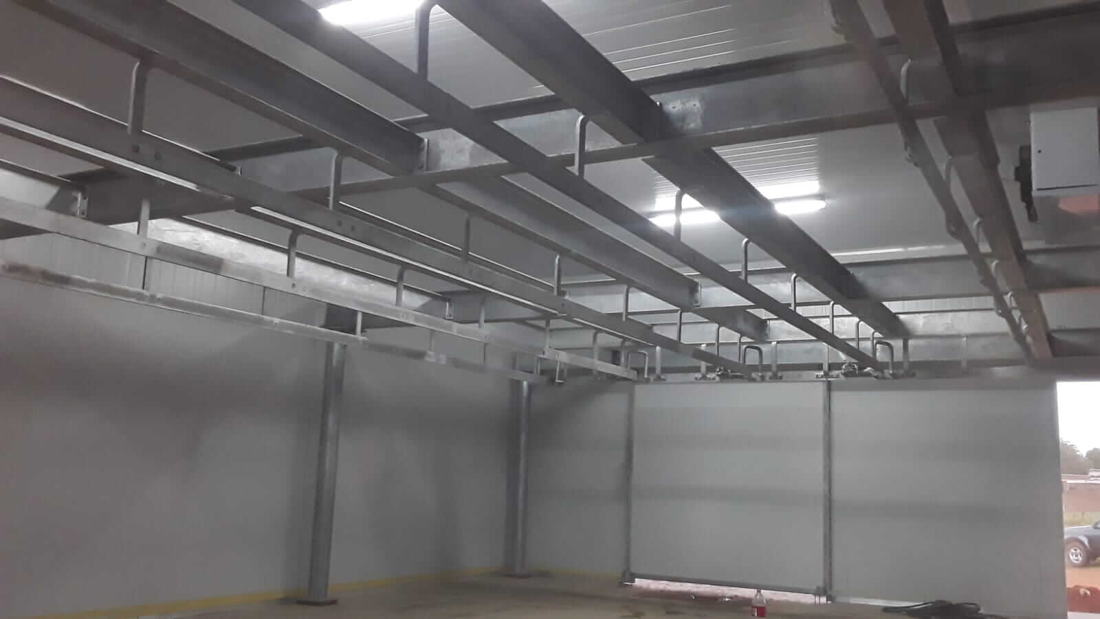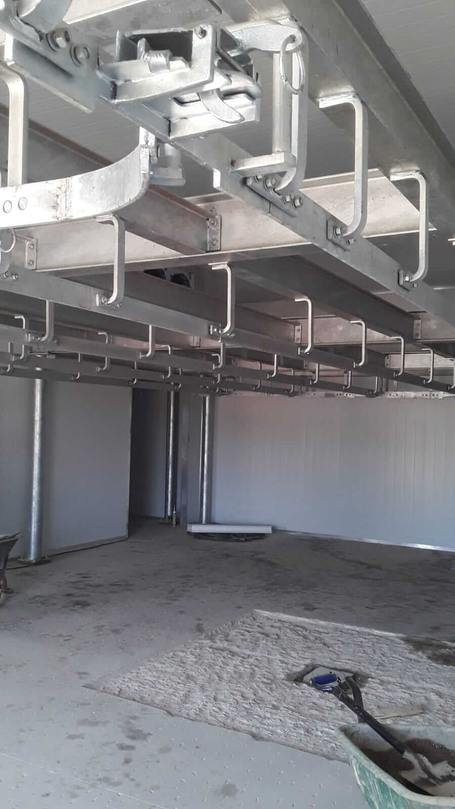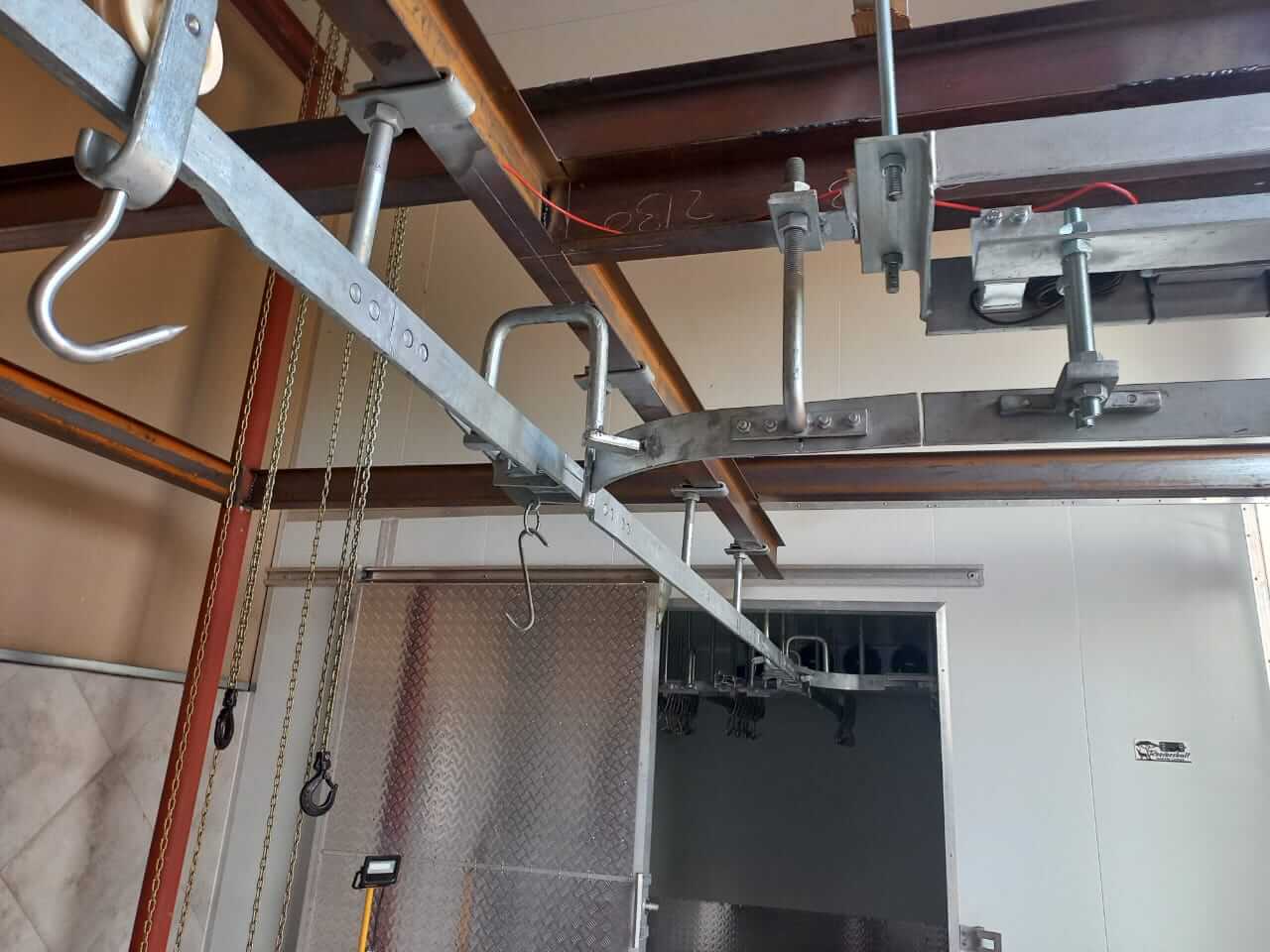 At Wins Fabrication our meat rail systems for large-scale butchery is an efficient handling system designed to streamline the processing of meat in commercial slaughterhouses and processing plants. This system typically involves overhead rail tracks that transport carcasses from various stages of the butchering process, including slaughter, dressing, and fabrication. The rail can facilitate a continuous flow of meat, reducing handling time and ensuring hygiene by minimizing contact with surfaces. With automation options, such as trolley systems and hoists, meat rail systems can enhance productivity, improve ergonomics for workers, and maintain consistent temperature control throughout the processing stages. Proper design and maintenance are crucial to ensure safety, efficiency, and compliance with health regulations.